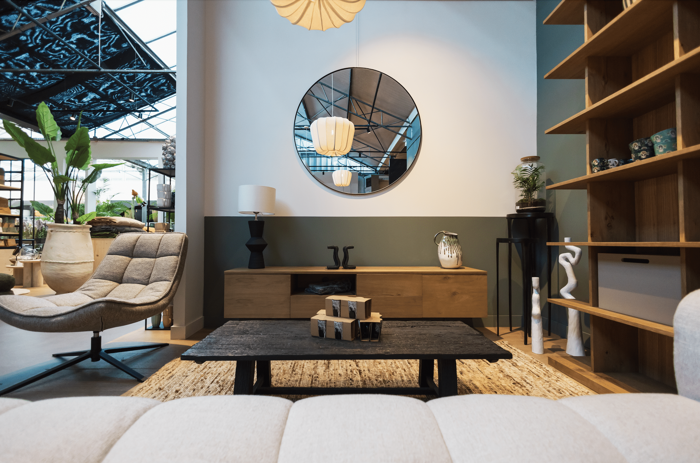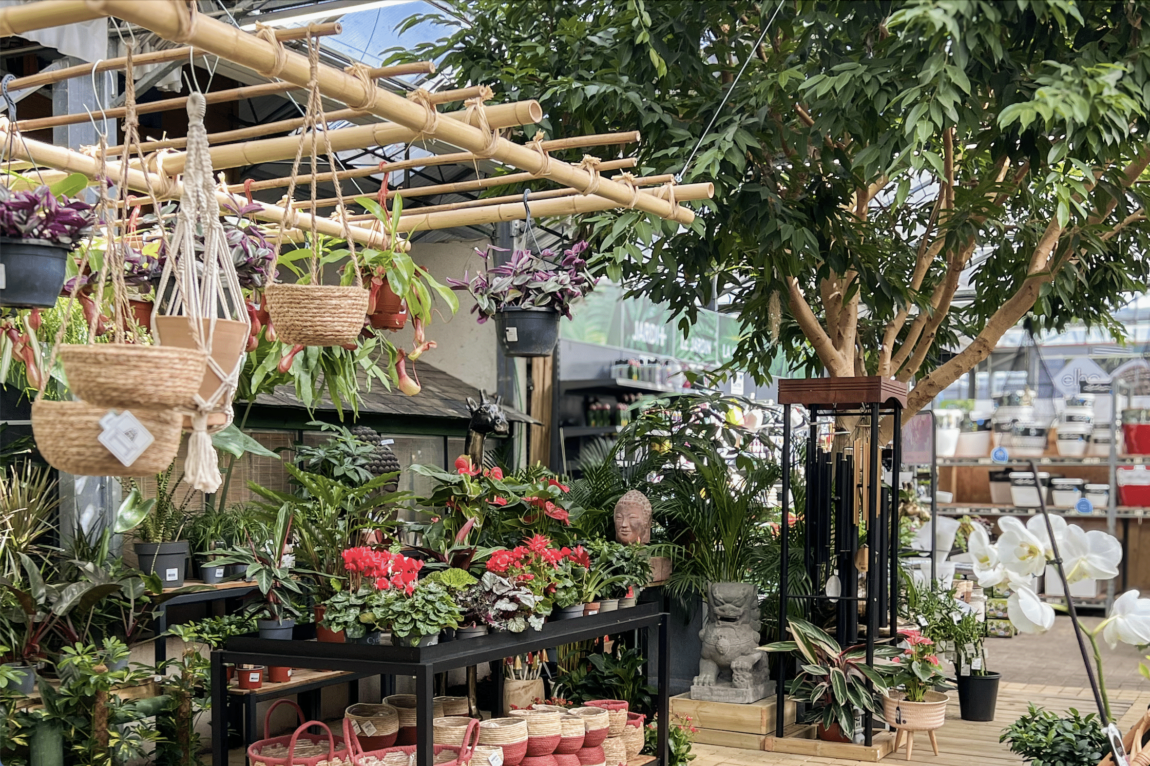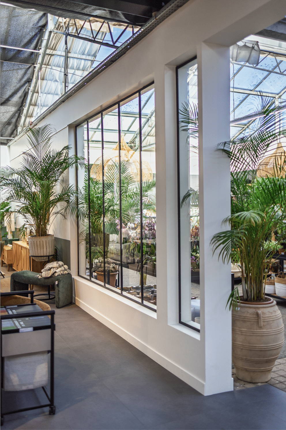 Depuis huit ans, l’univers déco a pris une place croissante chez JARDI+. J’ai imaginé un concept fort : un espace scénarisé, pensé comme une maison à vivre, où nature et art de vivre se rencontrent avec évidence. La serre, autrefois dédiée uniquement aux végétaux, s’est transformée en véritable pièce d’habitation, connectée visuellement à l’intérieur grâce à une verrière subtilement intégrée.