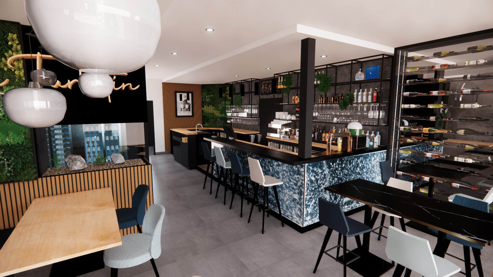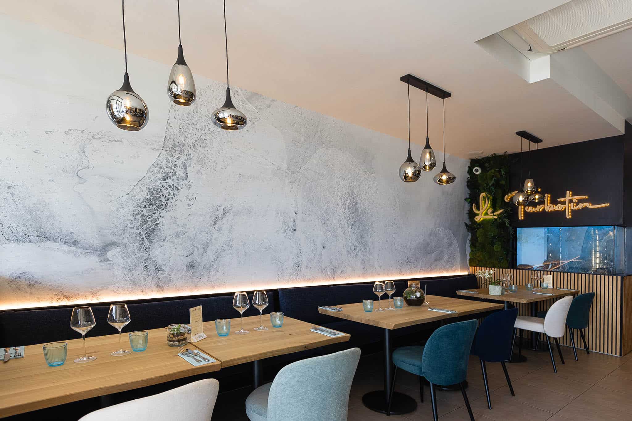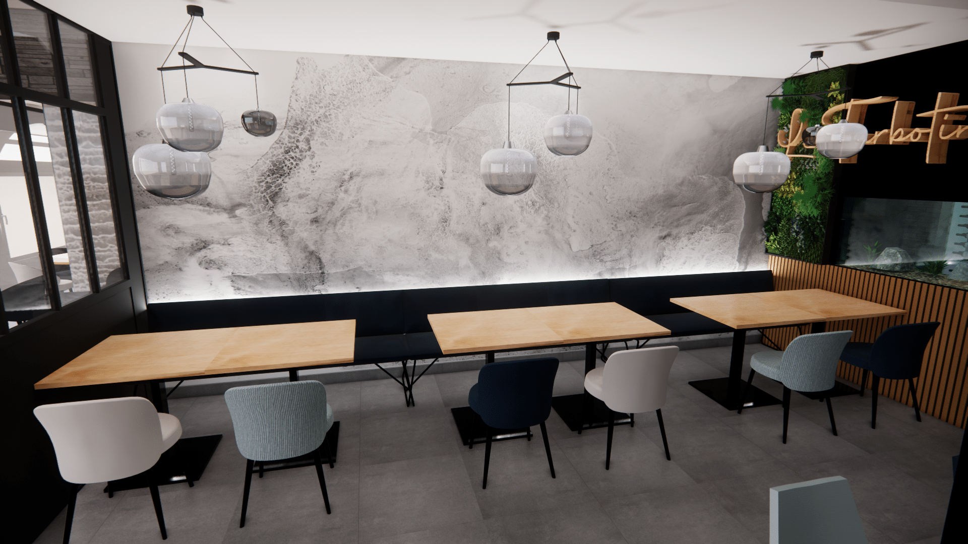Pour ce projet situé sur la presqu’île de Quiberon, j’ai accompagné le client dans la transformation complète de son établissement, Le Turbotin. L’objectif était de moderniser l’espace tout en préservant l’identité d’un lieu devenu emblématique.