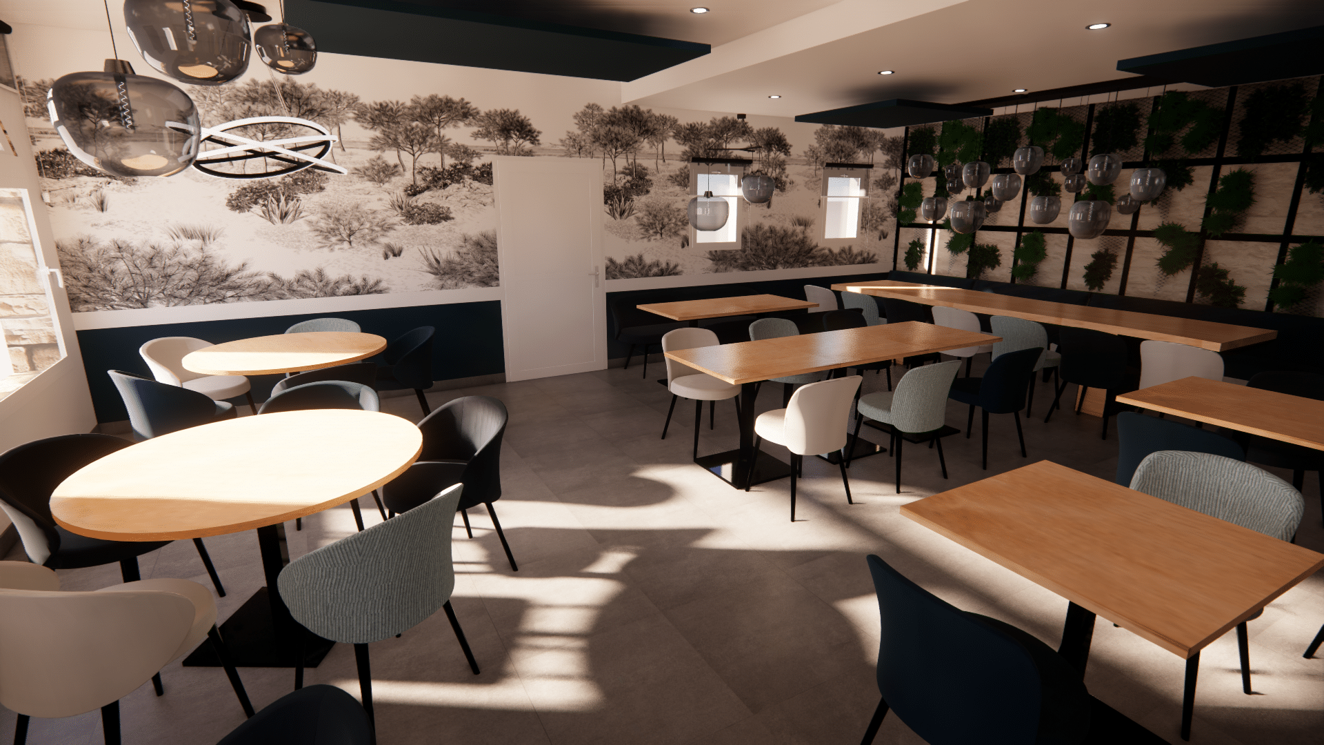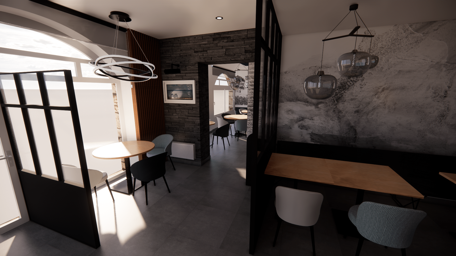 Grâce à ma double expertise d’architecte et d’ancienne restauratrice, j’ai pu proposer une restructuration cohérente, mêlant optimisation des volumes, mise en valeur des matériaux bruts et intégration fluide des contraintes réglementaires. La conception s’est appuyée sur des plans 3D et des vues en rendu réaliste, facilitant la projection et la prise de décision.