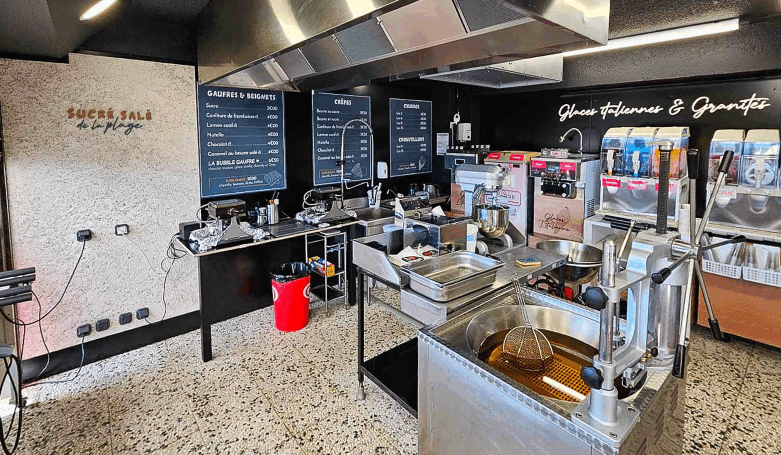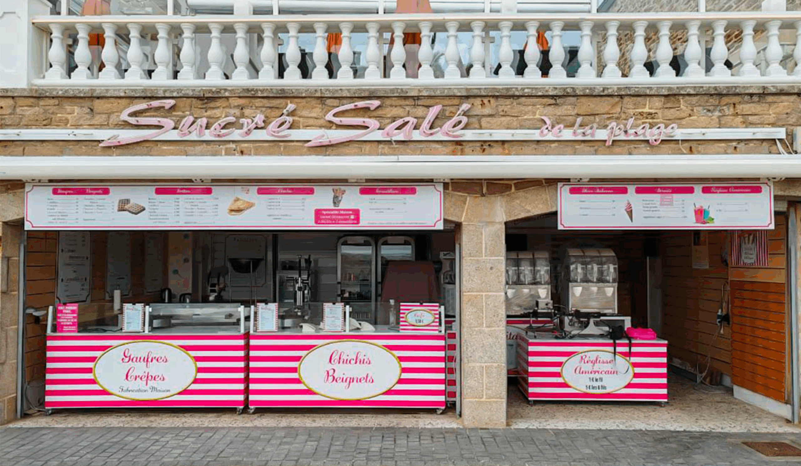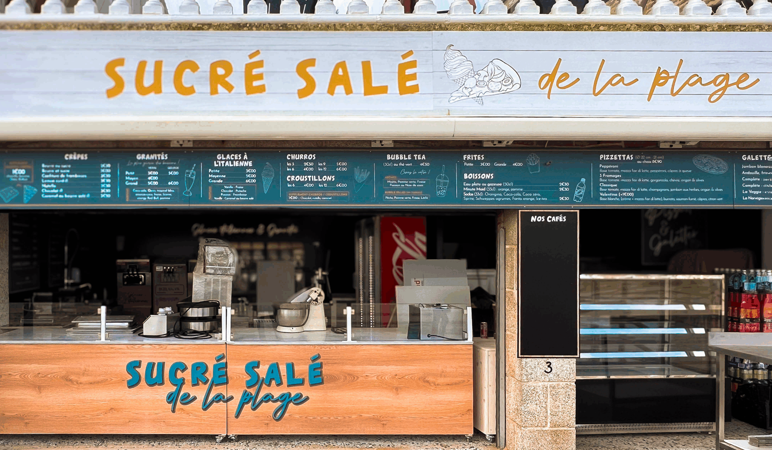 Situé face à la mer sur la presqu’île de Quiberon, Le Sucré Salé de la plage est un glacier qui avait besoin d’un vent de fraîcheur. Le propriétaire a fait appel à AD Décoration pour repenser totalement l’espace, en conservant l’âme du lieu tout en lui apportant une nouvelle dynamique.