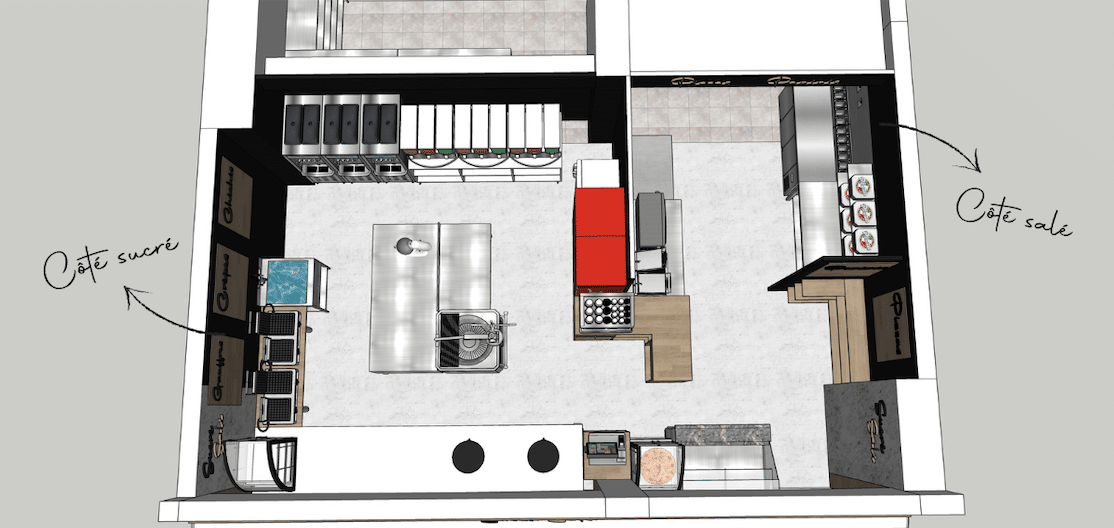 Au-delà de la rénovation complète de la partie existante dédiée au sucré, Anaïs a imaginé et créé une nouvelle zone dédiée à une offre salée. Cette extension répondait à la volonté du propriétaire d’élargir sa carte, tout en conservant une cohérence visuelle et fonctionnelle entre les deux univers.