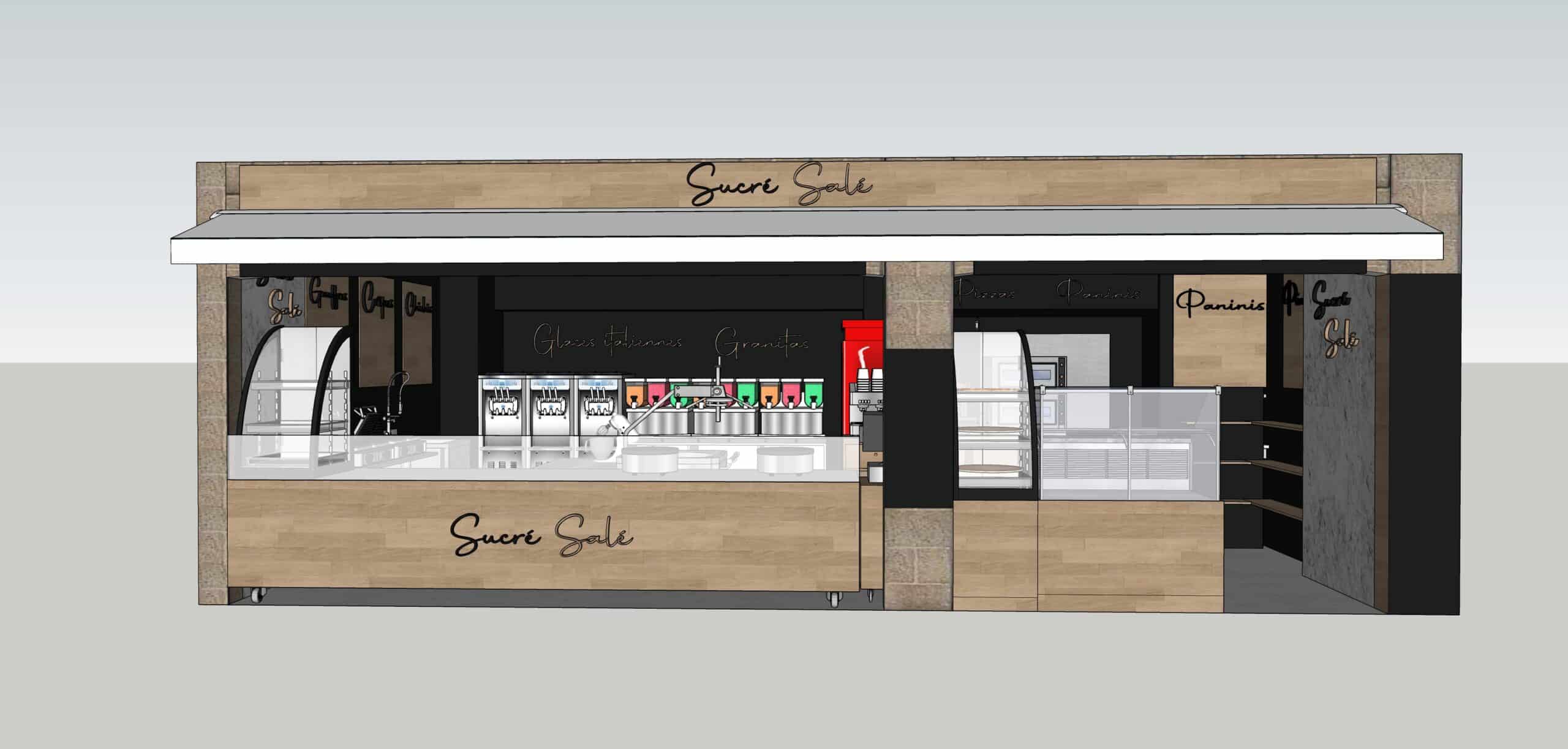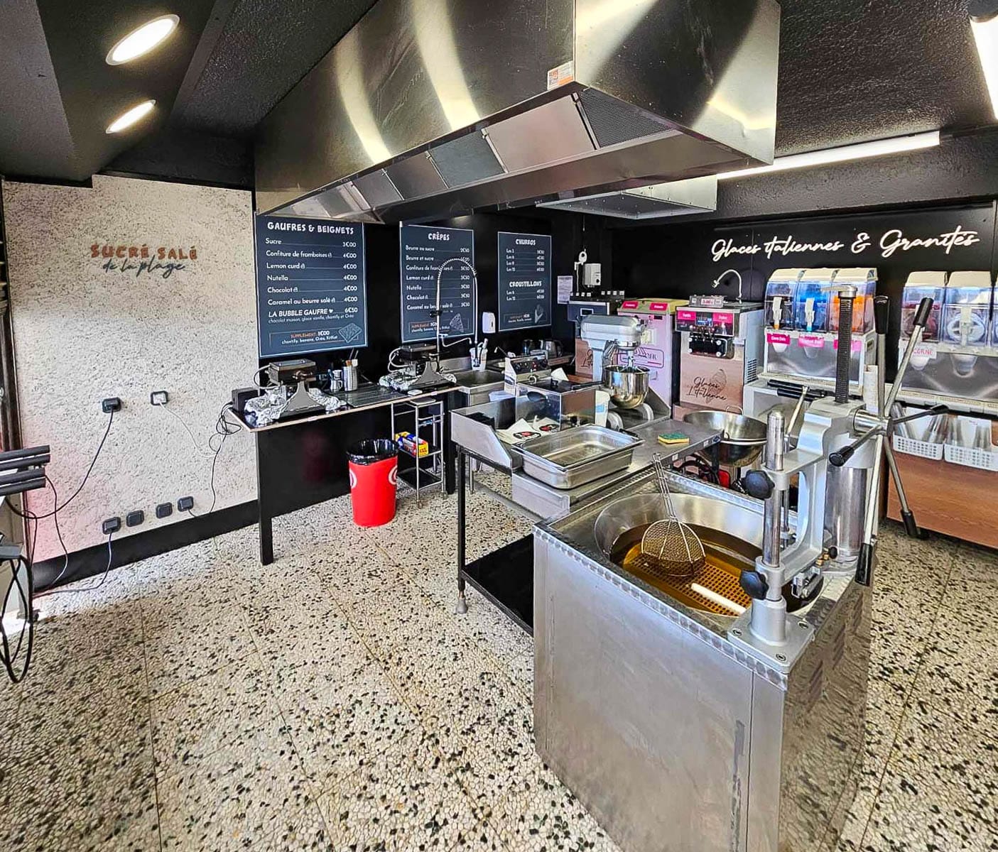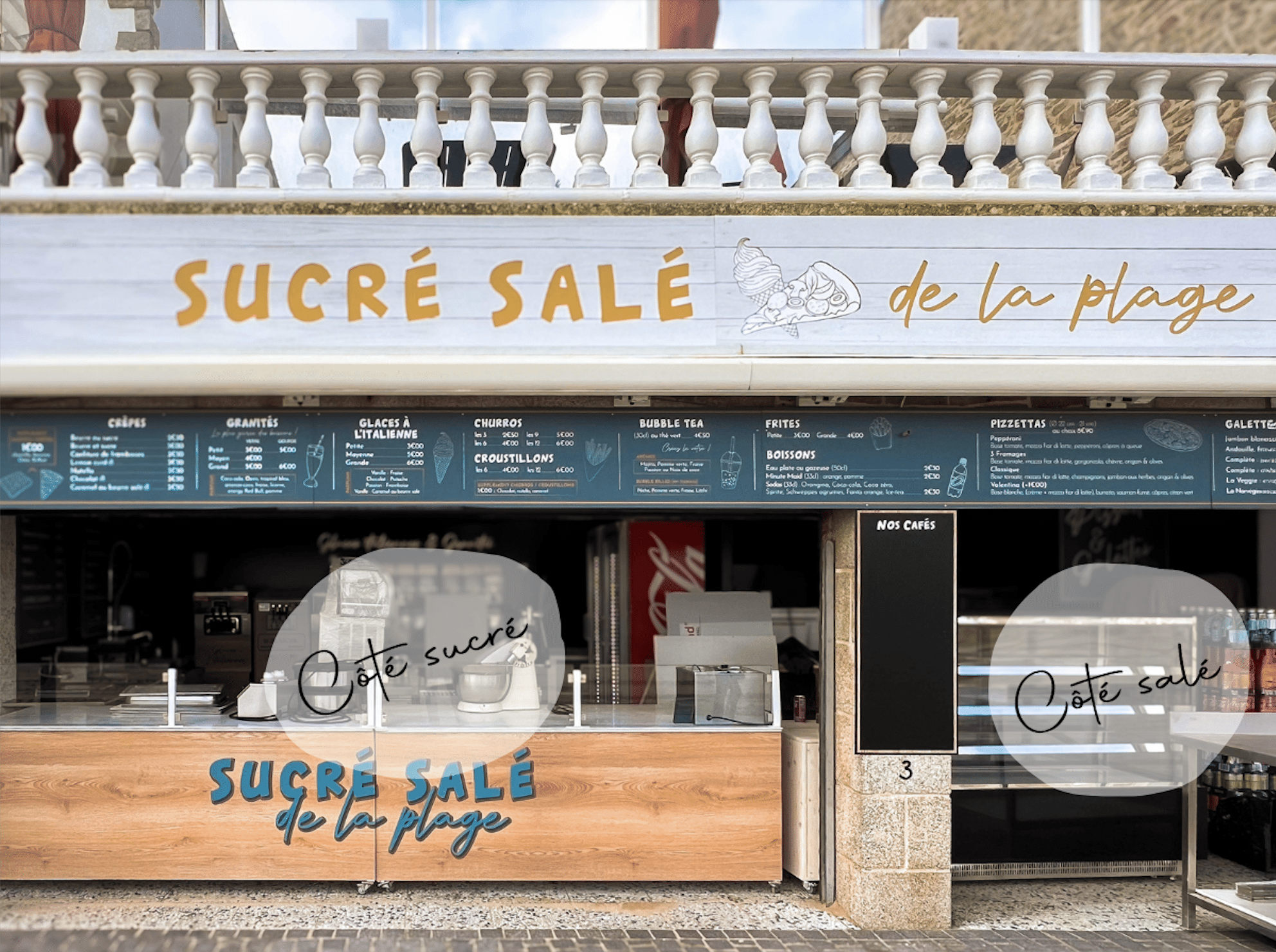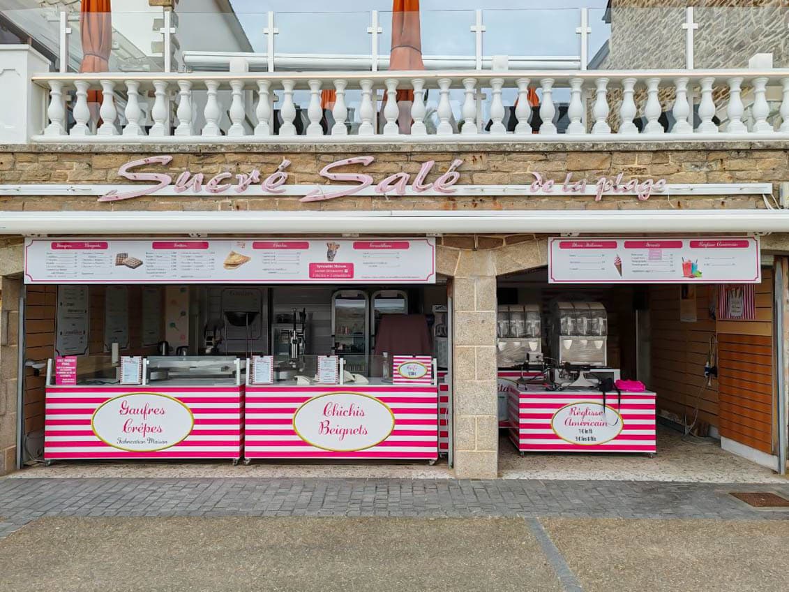 Situé face à la mer sur la presqu’île de Quiberon, Le Sucré Salé de la plage est un glacier qui avait besoin d’un vent de fraîcheur. Le propriétaire a fait appel à AD Décoration pour repenser totalement l’espace, en conservant l’âme du lieu tout en lui apportant une nouvelle dynamique.